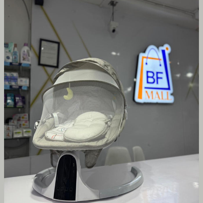Electric Baby Swing Cradle for Your Little One With 5 Point Safety Harness and Also Comes with Music This Cradle Can Also Be Controlled by the Remote Controller and Also the Speed of the Cradle Can Be Controlled This Allows the mother to Control the Baby's Cradle While Doing Her Own Thing. This Cradle Swing Has 5 Level of Speed Adjustment Range and It Makes Easy for Parents to Choose a Comfortable Pace to Put the Baby to Sleep. The Cradle Comes With 10 Different Built in Songs Which Makes the Baby to Sleep with Music. The Baby Swing Is Equipped with A 5-Point Safety Belt, Which Prevents The Baby from Slipping and Protects the Baby's Safety at All Times. Non-Slip Pad at the Bottom of the Cradle to Prevent the Bottom of the Cradle from Slipping.